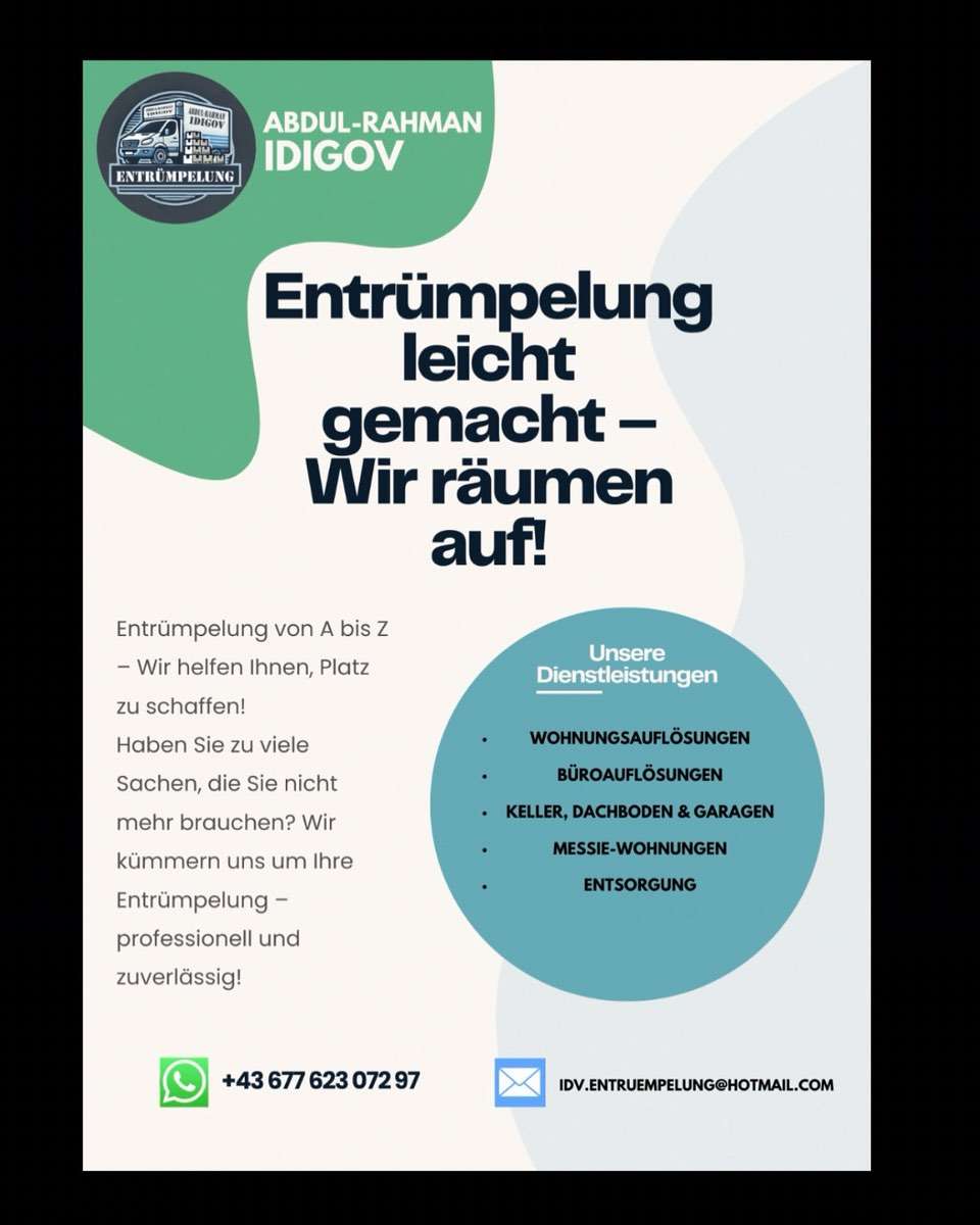 Wir bieten professionelle Entrümpelung, Wohnungsauflösungen, Keller- und Dachbodenentrümpelung, Garagenentrümpelung, Sperrmüllabholung, Möbeltransport und Entsorgung in Vöcklabruck, Regau, Timelkam, Schwanenstadt, Attnang-Puchheim, Frankenmarkt, Altmünster, Gmunden, Mondsee, Lambach, Vorchdorf, Ohlsdorf, Pinsdorf, Vöcklamarkt, Redlham und Zell am Moos an. Unsere Leistungen umfassen Entrümpelung, Wohnungsauflösungen, Keller- und Dachbodenentrümpelung, Garagenentrümpelung, Sperrmüllabholung, Möbeltransport und Entsorgung in allen genannten Orten. Vertrauen Sie auf unsere Zuverlässigkeit, Sauberkeit und fairen Preise.